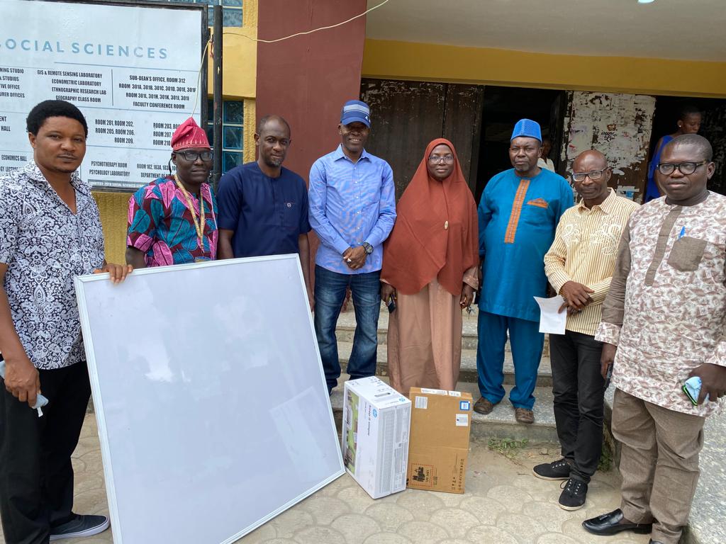 Some members of the Lagos State University Alumni (2006 set) who graduated from the Department of Economics, Faculty of Social Sciences have donated a white board, laptop and printer to the department ahead of the National Universities Commission (NUC) accreditation exercise coming up soon.