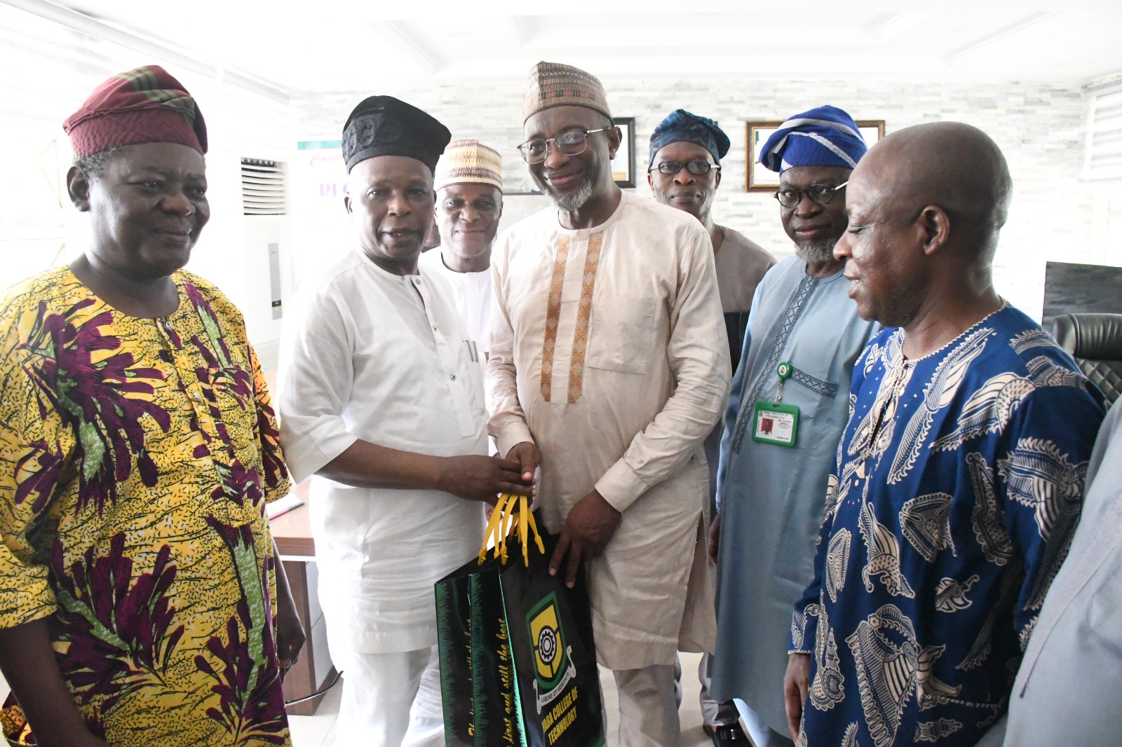 Photo caption from left: The rector, Yaba College of Technology, Dr. Engr. Ibraheem Abdul (m) presenting college souvenir to the Hon. Minister of Justice and Attorney General of the Federation & Former Governing Council Chairman of YABATECH, Prince Lateef Fagbemi at a courtesy visit paid to the college management, others are top management staff of the institution.