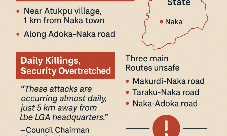 A source from Naka, who preferred anonymity due to security concerns, described the horror surrounding the murders. “One of the victims was attacked and killed near Atukpu village, just one kilometre away from Naka town, along the Taraku-Naka road. On the same day, another victim was killed along the Naka-Adoka road,” the source said.