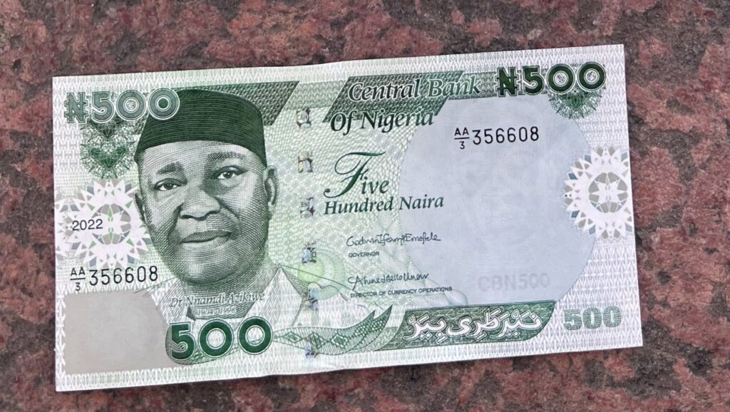 The portrait of Nnamdi Azikiwe appears on the note’s obverse. The reverse side depicts an offshore oil region.